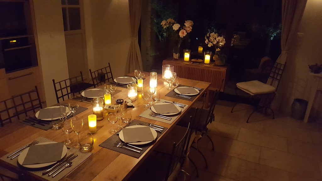 apéritif (offert), entrée, plat, dessert, vin non compris.